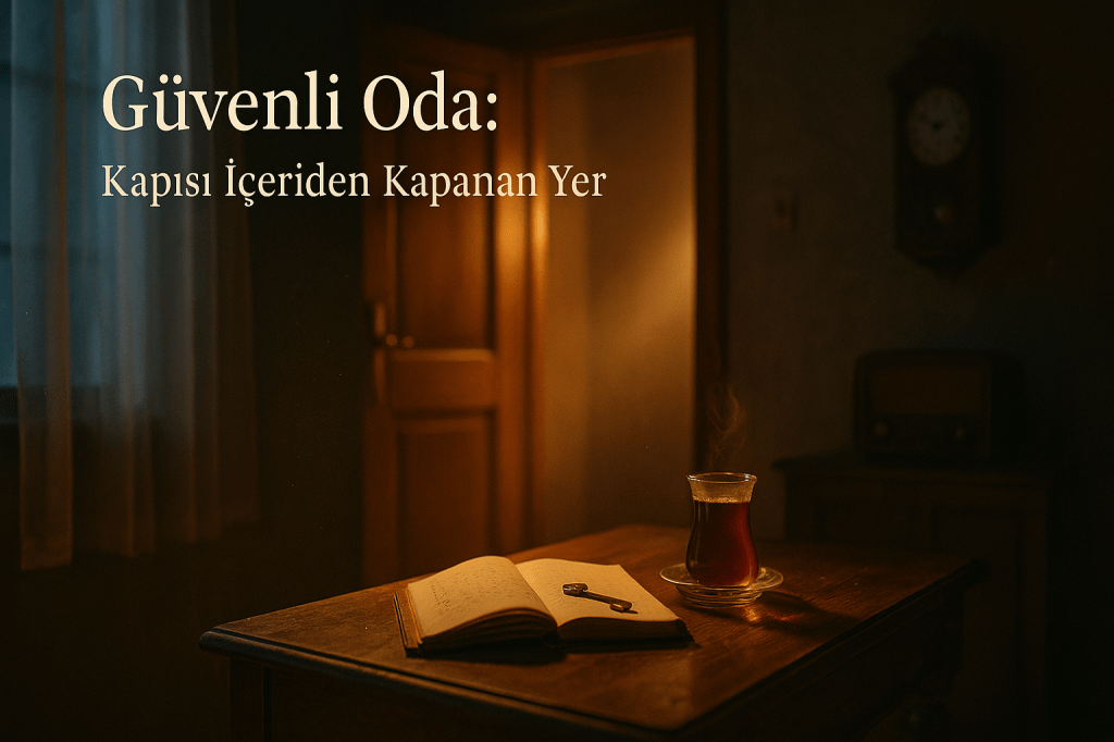 Gel, şöyle kapıyı hafifçe çek; gıcırdasın biraz, dursun ses. İçeri buyur. Ayakkabıları kapının yanına bırak, masanın üstündeki küçük paslı anahtarı görüyorsun ya—onu eline al; sıcaklığı sende kalsın. Kettle çoktan düdük öttürdü, iki ince belli bardağa çay koydum. Bu yazı öyle aceleye gelmeyecek; dumanı tüterken konuşacağız. Tamam mı? Çünkü “güvenli oda” dediğim şey, panik anlarında saklanılan beton bir sığınak değildir; daha çok, içeriden kilitlenen bir dikkat, nazikçe kapatılmış bir parantez, kendi kendine “şimdilik yeter” deme becerisidir. Ve evet, antika kokar biraz: ceviz bir masa, mürekkep lekeli bir defter, köşede hımbıl bir duvar saati… Zaman burada ağır aksak yürür; dışarıdaki hız buraya ayakkabıları çamurlu giremez.